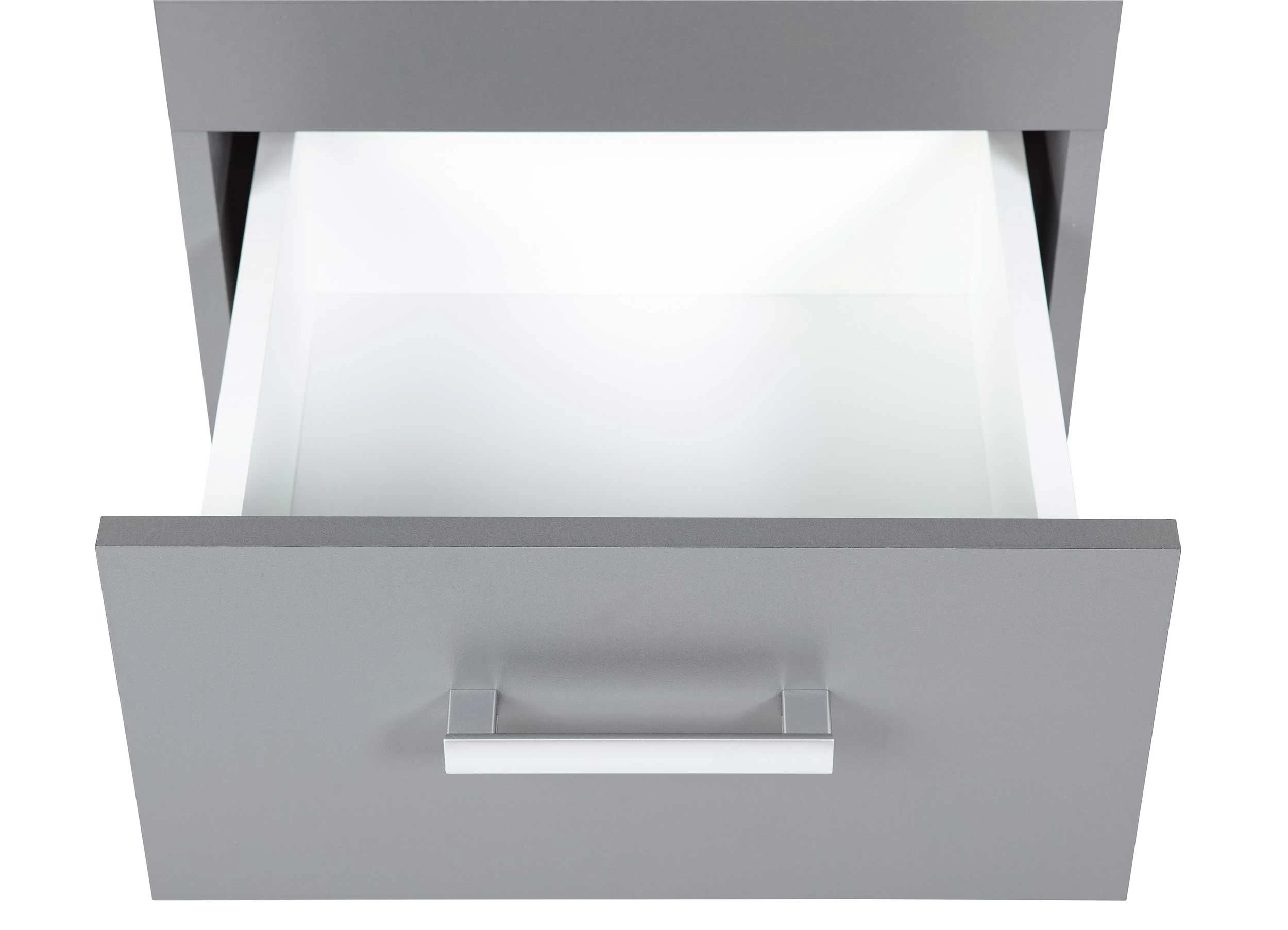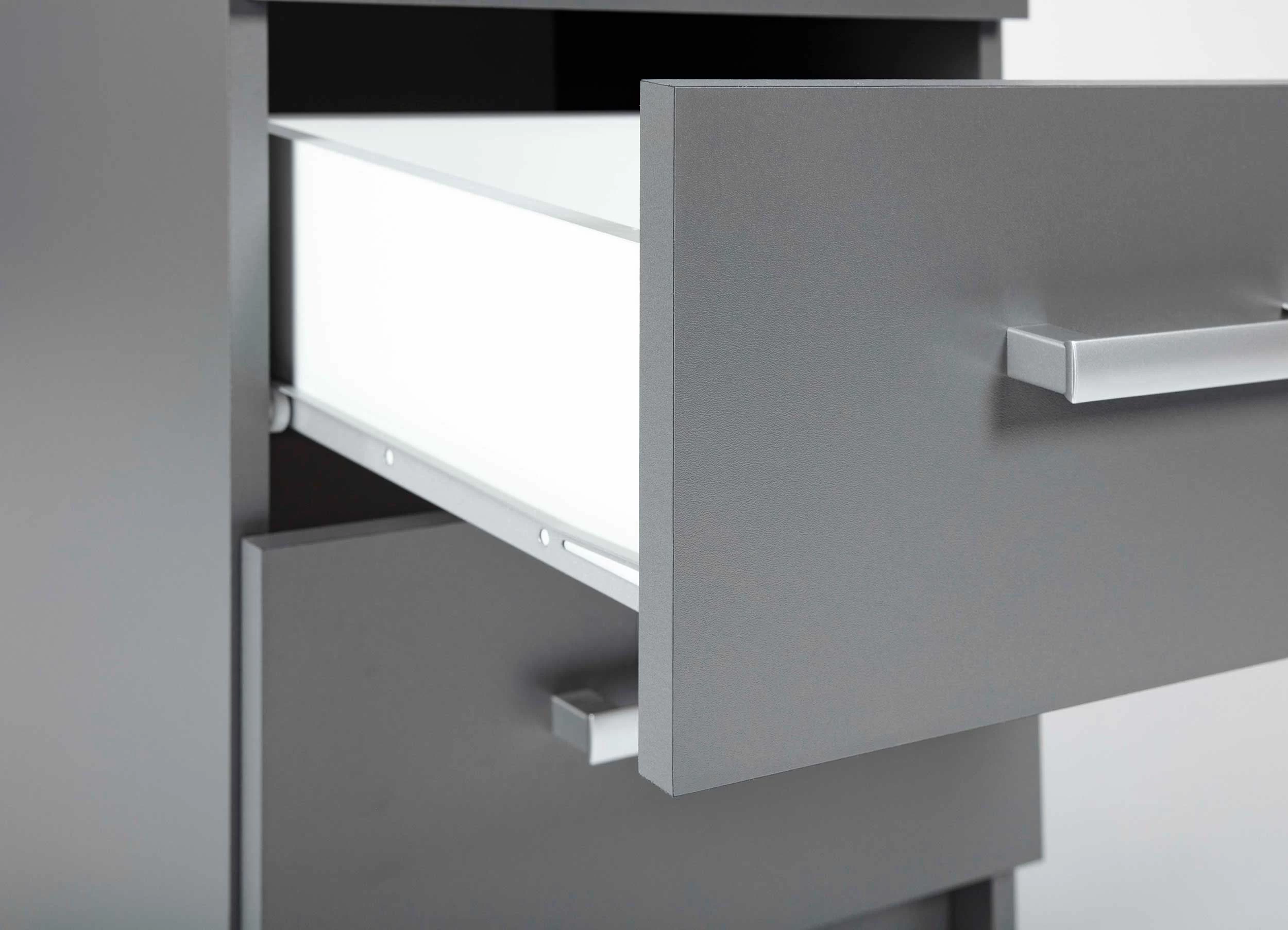 Ladekast Eden, uitgerust met 3 lades. Gemaakt uit spaanplaat grafiet grijs met een afwerking uit melamine.Â