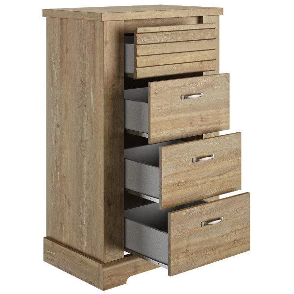 Deze handige ladekast heeft 4 extra diepe lades uitgerust met een soft-close systeem. Het blad van de ladekast is 35 mm dik.