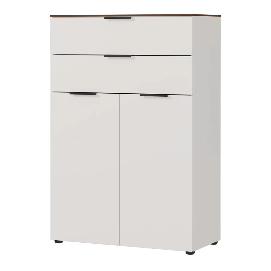 Deze praktische kast bestaat uit 2 lades en 2 deuren. Achter de deuren beschik je ook over een legplank.