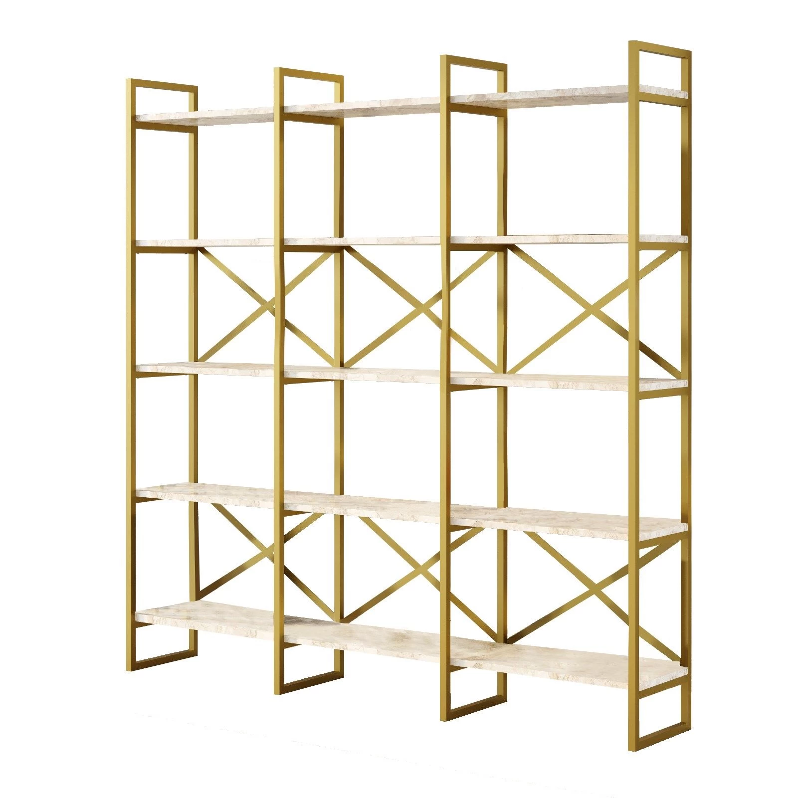 Wat de Locelso boekenplank zo bijzonder maakt, is de prachtige wit marmeren gouden kleur. De combinatie van wit en goud voegt een vleugje glamour toe aan elk interieur, waardoor deze boekenplank een centraal punt wordt in elke kamer. Of je nu een modern of klassiek ontwerp verkiest, de Locelso boekenplank past naadloos in elke kamer en creëert een geraffineerde sfeer.