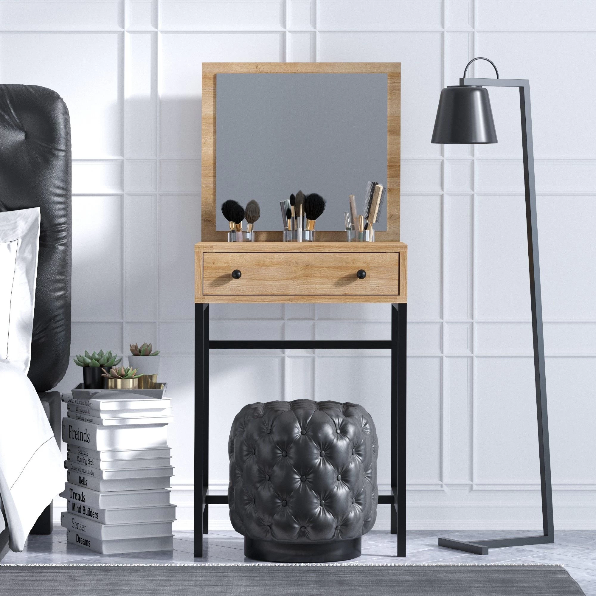 Mary Make-up Tafel | Melamine Coating | Metalen Poten | Eiken Zwart