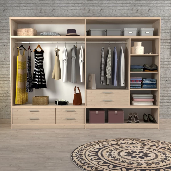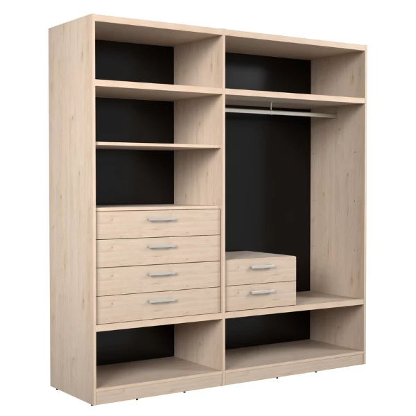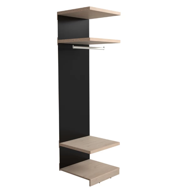 Module voor dressingcombinatie Playa 58.2×59.9x220cm uit spaanplaat afgewerkt in eikdecor. Achterwand met melamine in wit of zwart. Uitgerust met twee legplanken en een kledingroede.