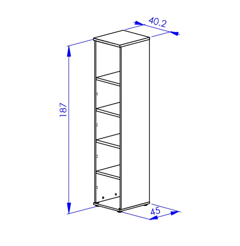 Open kast Dorbi met 4 legplanken uit spaanplaat. 187 cm hoog.