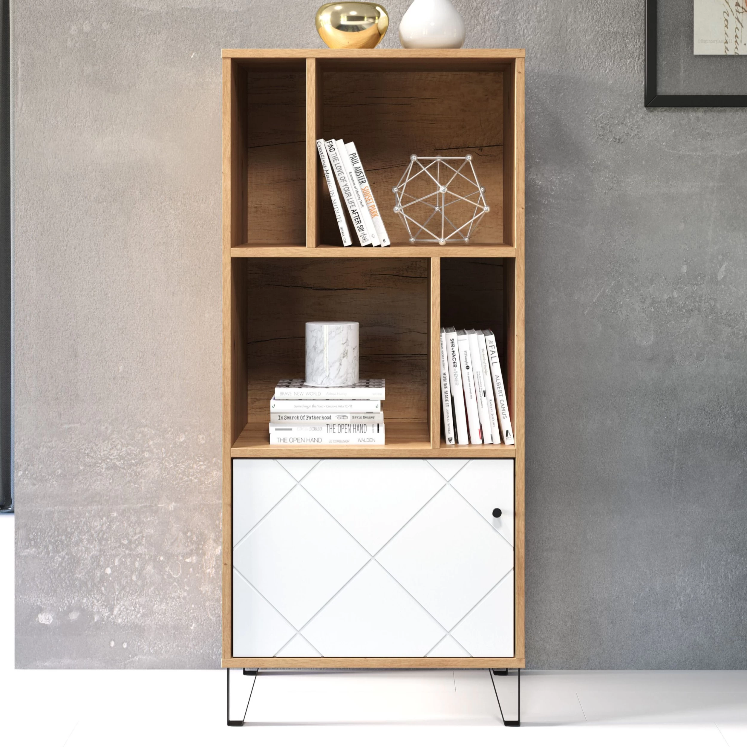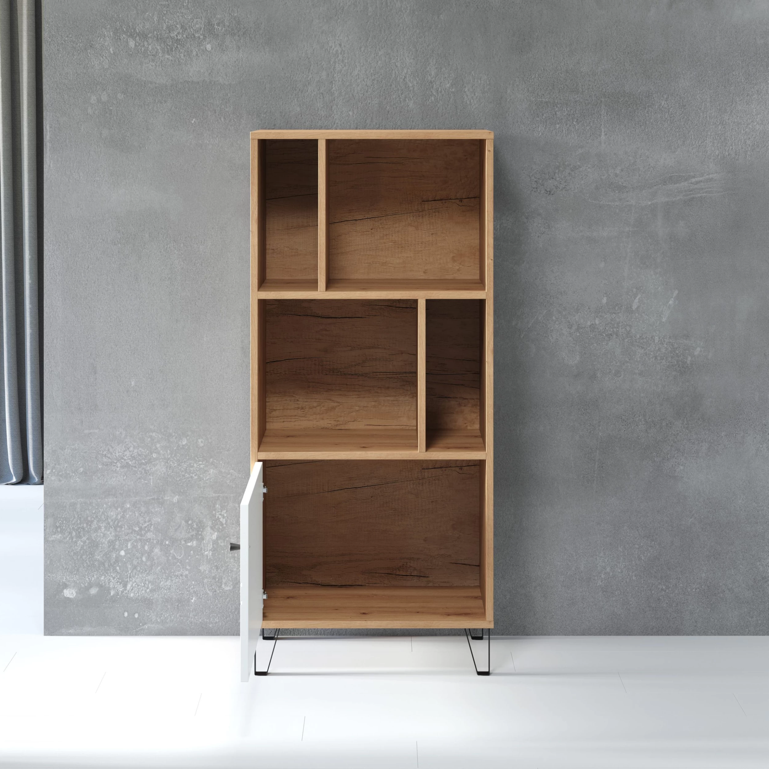 Maar het gaat niet alleen om het uiterlijk, want deze plank is ook zeer functioneel. Hij heeft vier open vakken, zodat je je favoriete spullen of boeken kunt uitstallen. Daarnaast heeft hij één compartiment met een deur, zodat je een verborgen opbergruimte hebt voor spullen die je uit het zicht wilt houden. Met deze combinatie van open en gesloten vakken kun je al je belangrijke spullen ruimtebesparend opbergen.