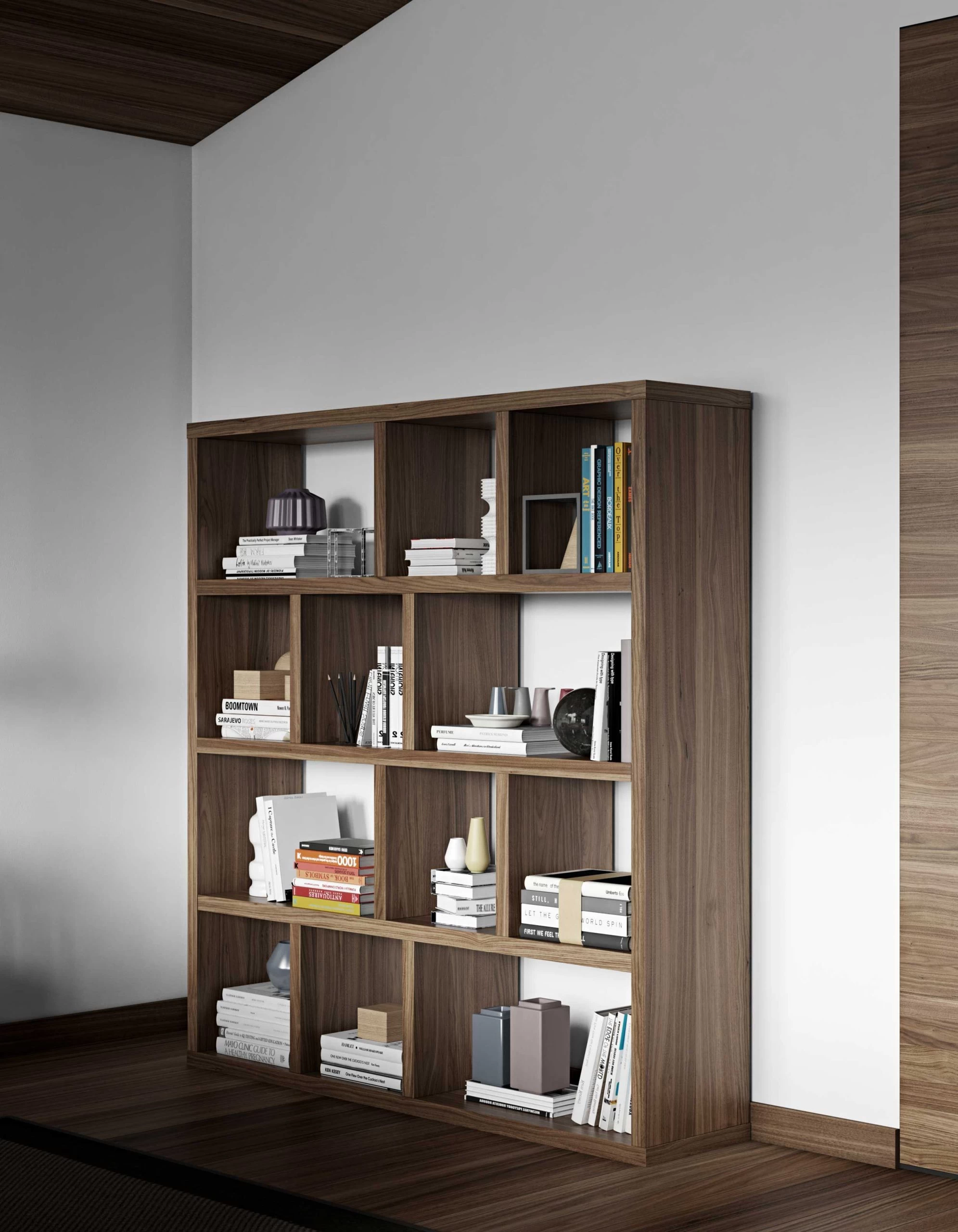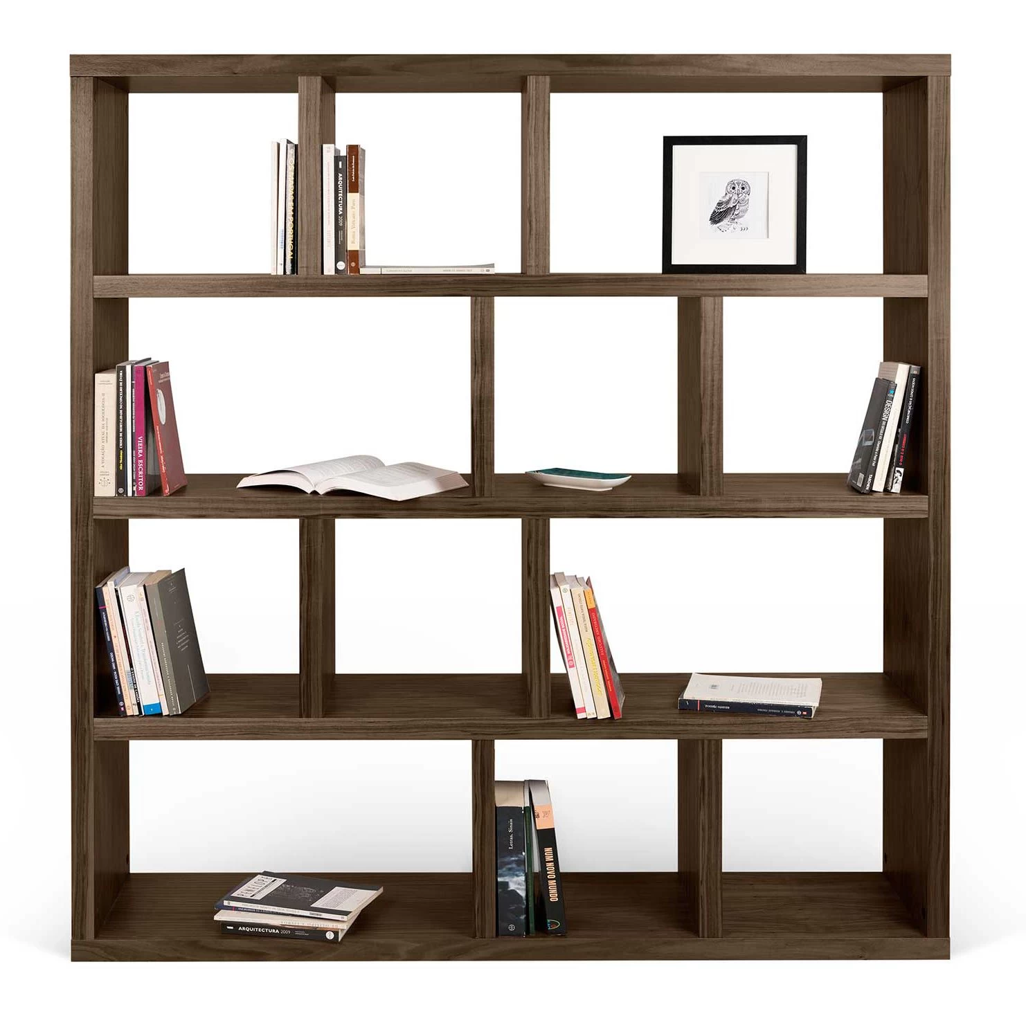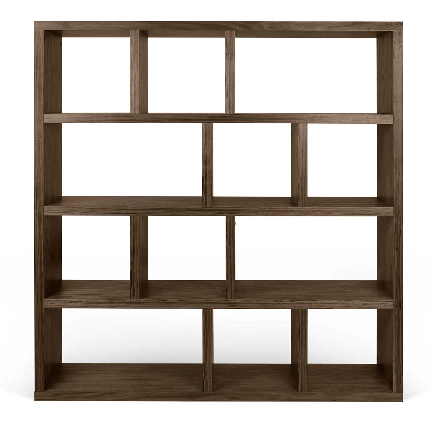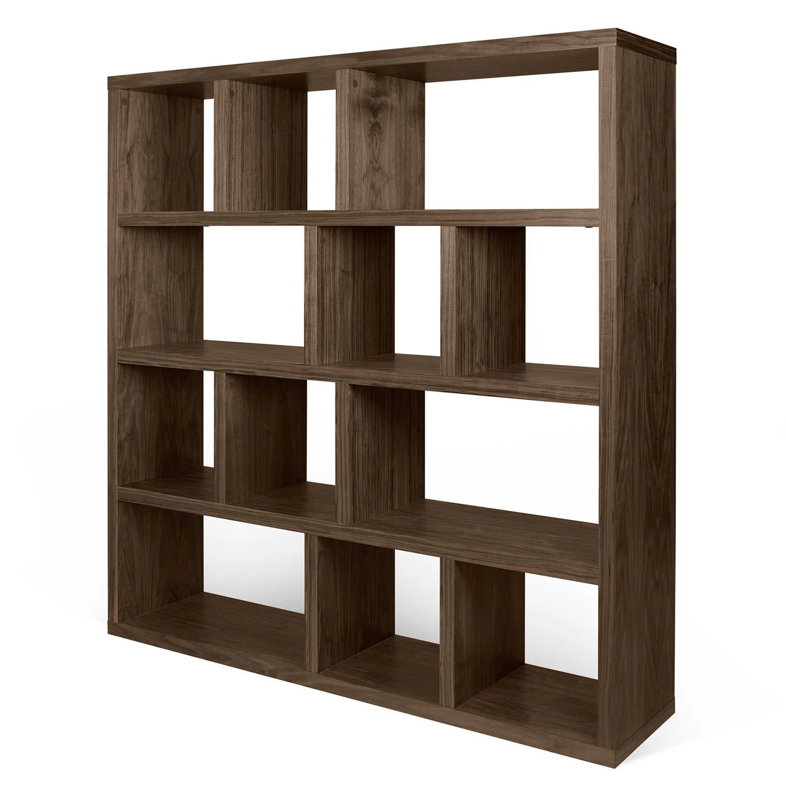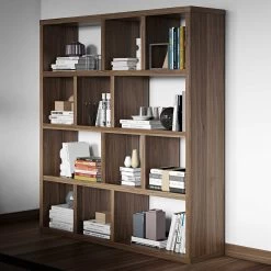 Opbergrek Berkeley kenmerkt zich door zijn atypische vormgeving en vooral zijn geometrische indeling. Dankzij de walnootkleur is dit rek perfect in harmonie met de rest van jouw woonkamer of kantoor. De 4 niveaus zijn onderverdeeld in niches van verschillende groottes en bieden ruim voldoende plaats voor al jouw leesvoer en andere objecten.