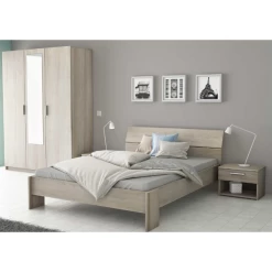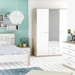 Kleerkast Seliena 3 Draaideuren, 1 Kledingroede, 4 Legplanken En 2 Lades-Geborstelde Eik/mat Wit