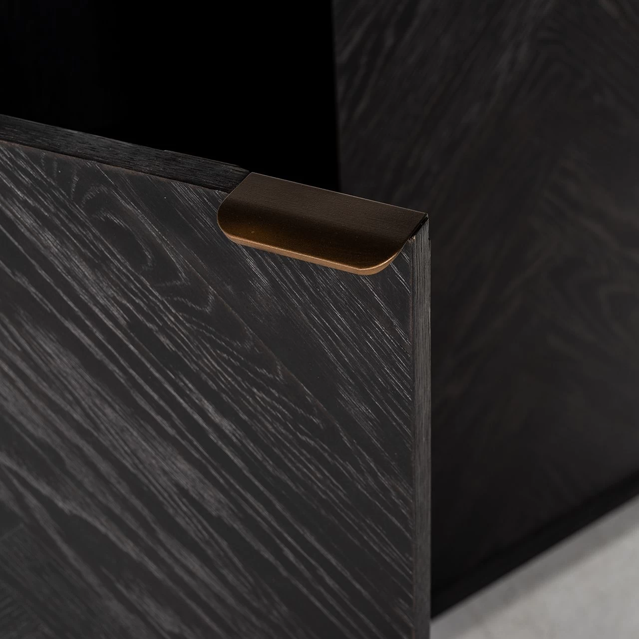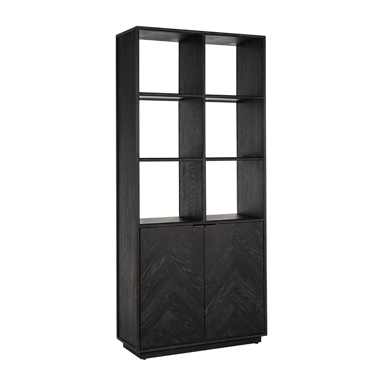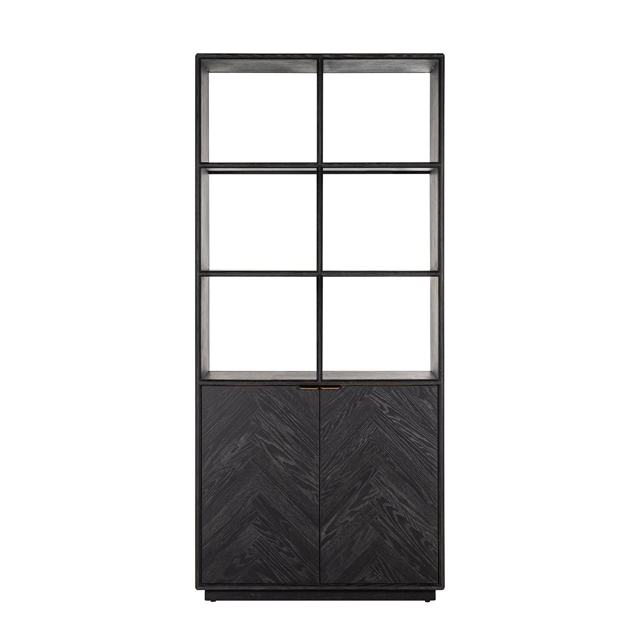 RICHMOND Boekenkast Bony 100cm 2 Deuren Visgraatmotief – Zwart/geborsteld Goud
