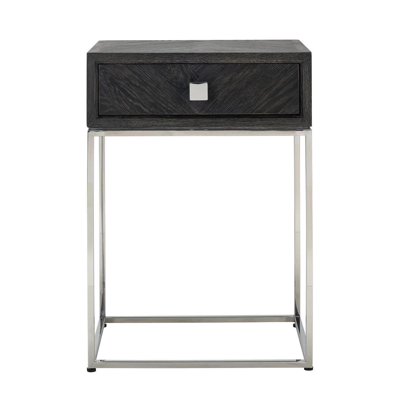 RICHMOND Nachtkastje Bony 50cm 1 Lade Visgraatmotief – Zwart/zilver