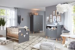 Babykamerset Mats | Bed En Luiertafel Met Opbergruimte | Grijs