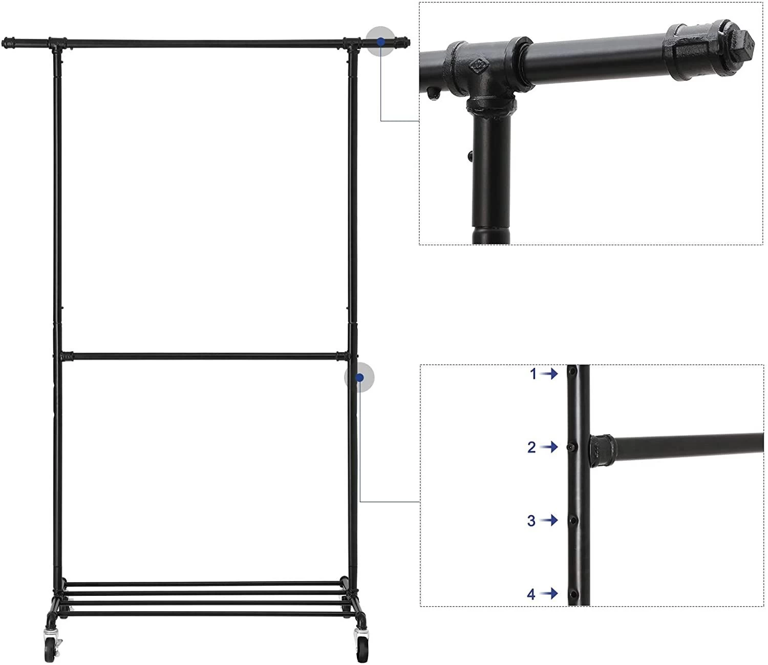 Songmics CHIC INDUSTRIAL KLEDINGREK Op Wielen – 110 Kg Belasting