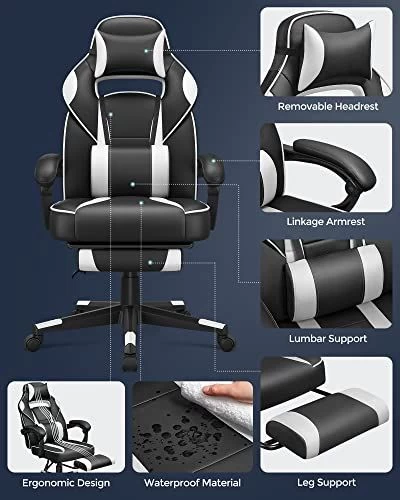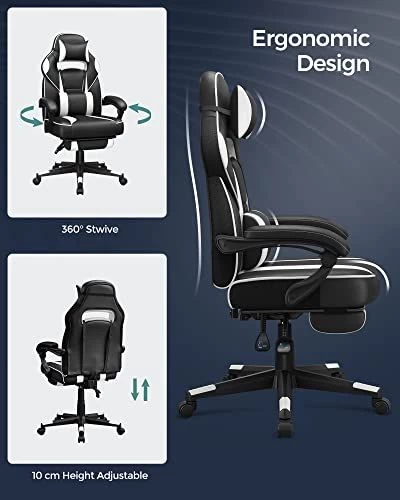Songmics Ergonomische Bureaustoel – Zwart/wit, 150 Kg Belastbaar