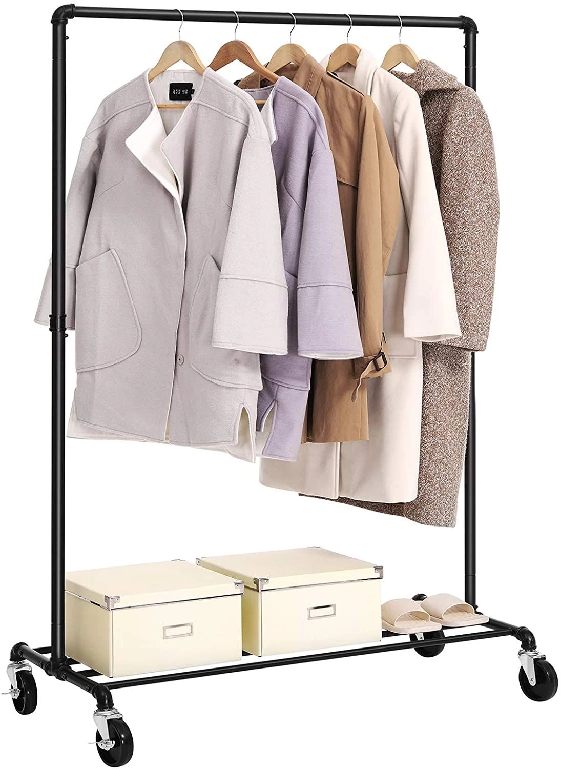 Songmics Metalen Kledingrek Op Wielen Voor Zwaar Gebruik, Geschikt Voor 90 Kg