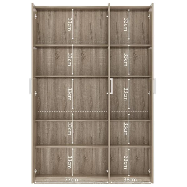 De afmetingen van deze kast zijn H-H 180 x B-L 120 x D-P 42 cm, waardoor het een veelzijdige opbergoptie is voor verschillende ruimtes. Of je nu kleding, boeken, dossiers of andere spullen wilt opbergen, met deze kast zit je goed. Het ruime interieur zorgt voor een gemakkelijke organisatie en een gemakkelijke toegang tot je spullen.