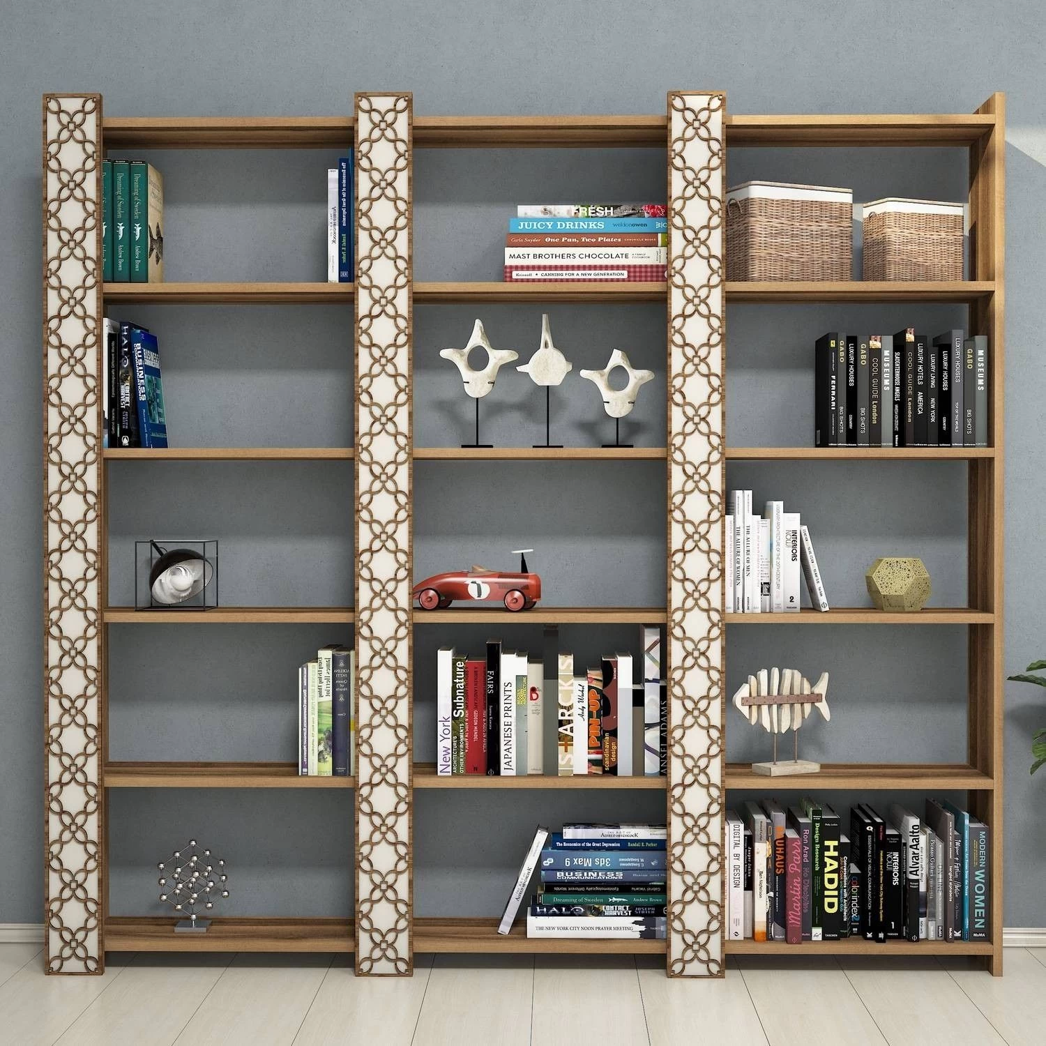 Woody Fashion boekenplank: Verfraai je ruimte met deze stijlvolle en duurzame boekenplank gemaakt van 100% gemelamineerd spaanplaat. Kenmerken zijn een dikte van 18 mm, een CNC-reliëf van 4 mm, kunststof poten en een breedte van 184. Verkrijgbaar in walnoot crème kleur