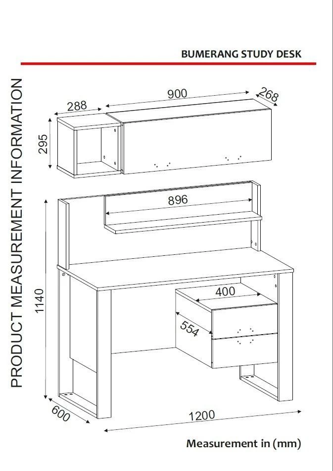 De Tera Home Study Desk heeft een strak en modern ontwerp, met een breedte van 120 cm, hoogte van 114 cm en diepte van 60 cm. Dit royale bureauformaat biedt voldoende ruimte om te studeren, opdrachten uit te voeren en je materialen te ordenen. Of je nu een student bent die een rustige plek nodig heeft om zich te concentreren of een professional die vanuit huis werkt, dit bureau biedt de perfecte werkplek om de productiviteit en efficiëntie te verhogen.