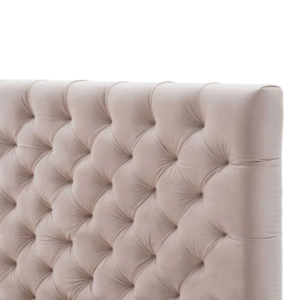 De bedden Janice combineren een strak ontwerp met een glamoureuze look. Het gecapitonneerde hoofdbord geeft de bedden een luxueuze uitstraling. Dit bed is bekleed met beige velours en is uitgerust met zwarte pootjes. Naast stijlvol zijn de bedden ook praktisch. Onder de lattenbodem is opbergruimte voorzien voor bijvoorbeeld kussens, bedlinnen of kleren. Dit bed heeft een ligoppervlak van 180x200cm. De matras is niet inbegrepen. De bedden Janice zijn verkrijgbaar in verschillende stijlvolle kleuren. Ontdek ze allemaal op onze website.