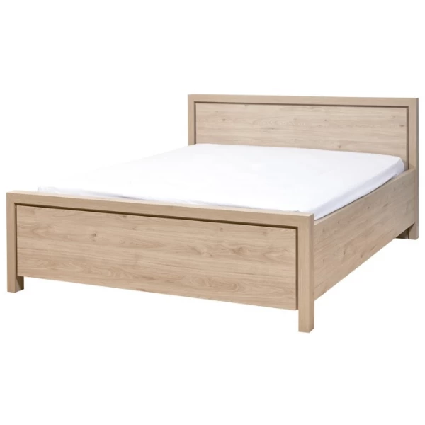 Tweepersoonsbed Lavio 169x217x95cm uit spaanplaat afgewerkt in eikdecor. Geschikt voor een matras van 160x200cm. Matras niet inbegrepen.