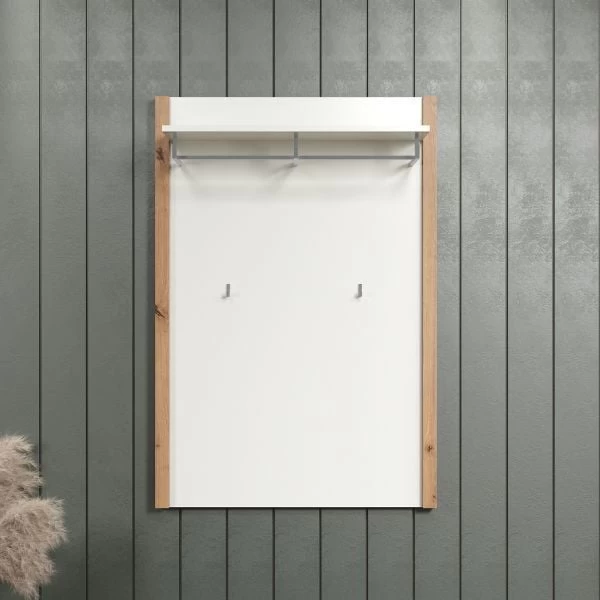 Transformeer je interieur met ons prachtige wandpaneel uit de Dakota-serie. Dit verfijnde paneel van 78 centimeter in lengte, 26 centimeter in diepte en 114 centimeter in hoogte voegt niet alleen een vleugje elegantie toe, maar biedt ook praktische oplossingen voor opslag en decoratie. Met twee handige haken en een ruime plank is dit paneel ideaal voor het organiseren van sleutels, jassen, hoeden en decoratieve items.