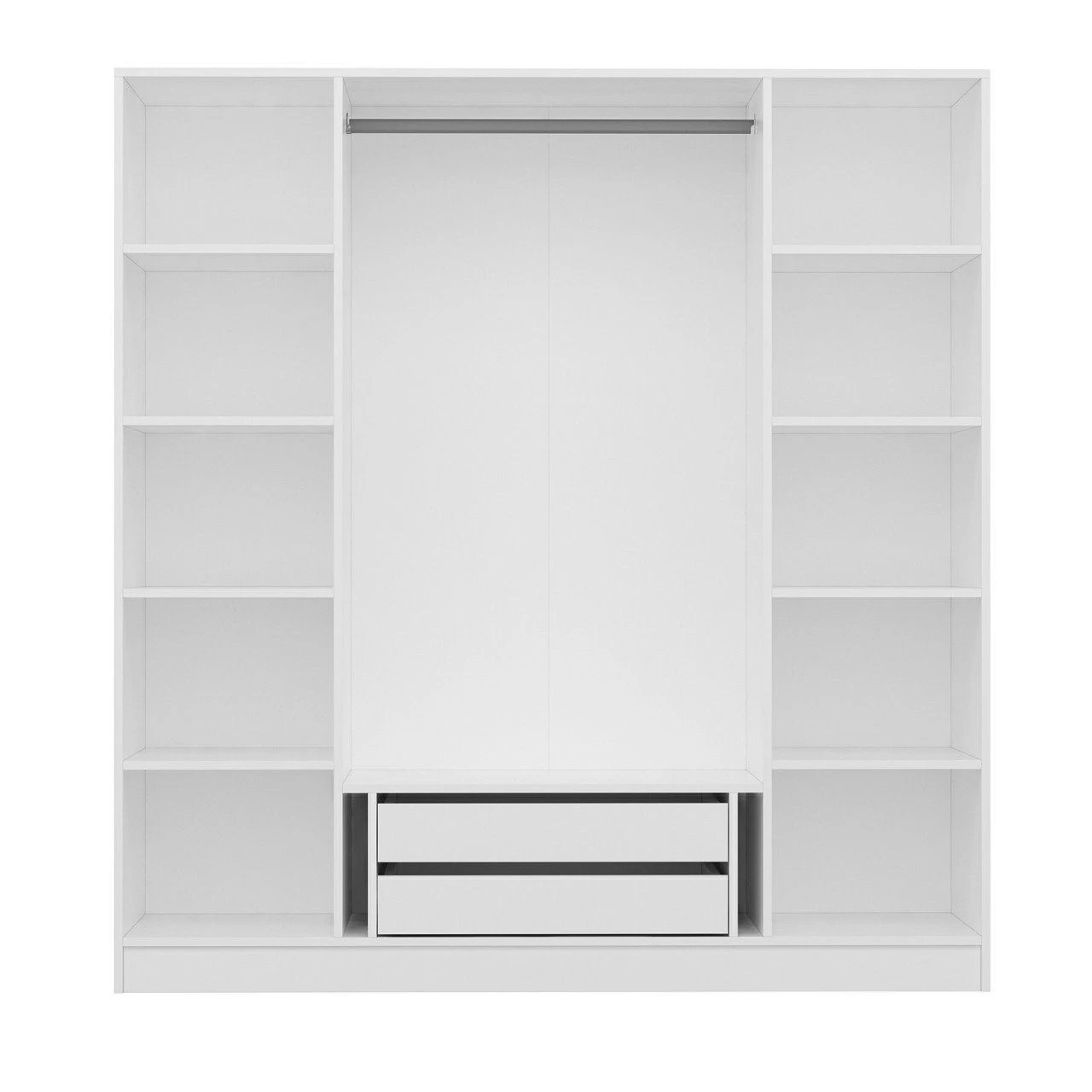 Een van de belangrijkste kenmerken van deze kledingkast zijn de vele legplanken, zodat je je spullen efficiënt kunt organiseren. Of het nu gaat om opgevouwen kleding, schoenen, handtassen of accessoires, er is overal een speciale ruimte voor.